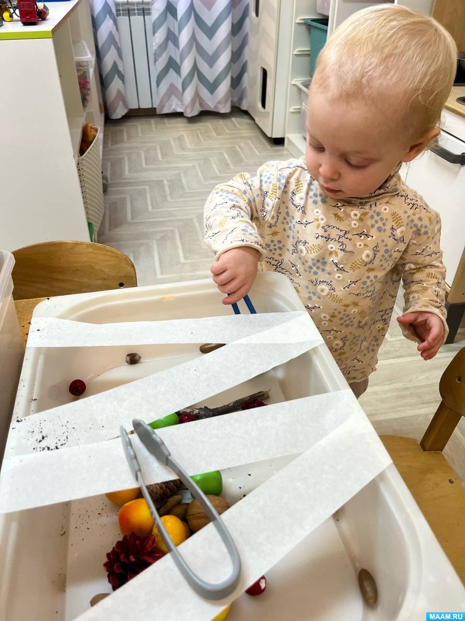 - Обеспечьте доступность материалов: игрушки и пособия должны быть легко доступными, чтобы малыш мог самостоятельно выбрать и исследовать.